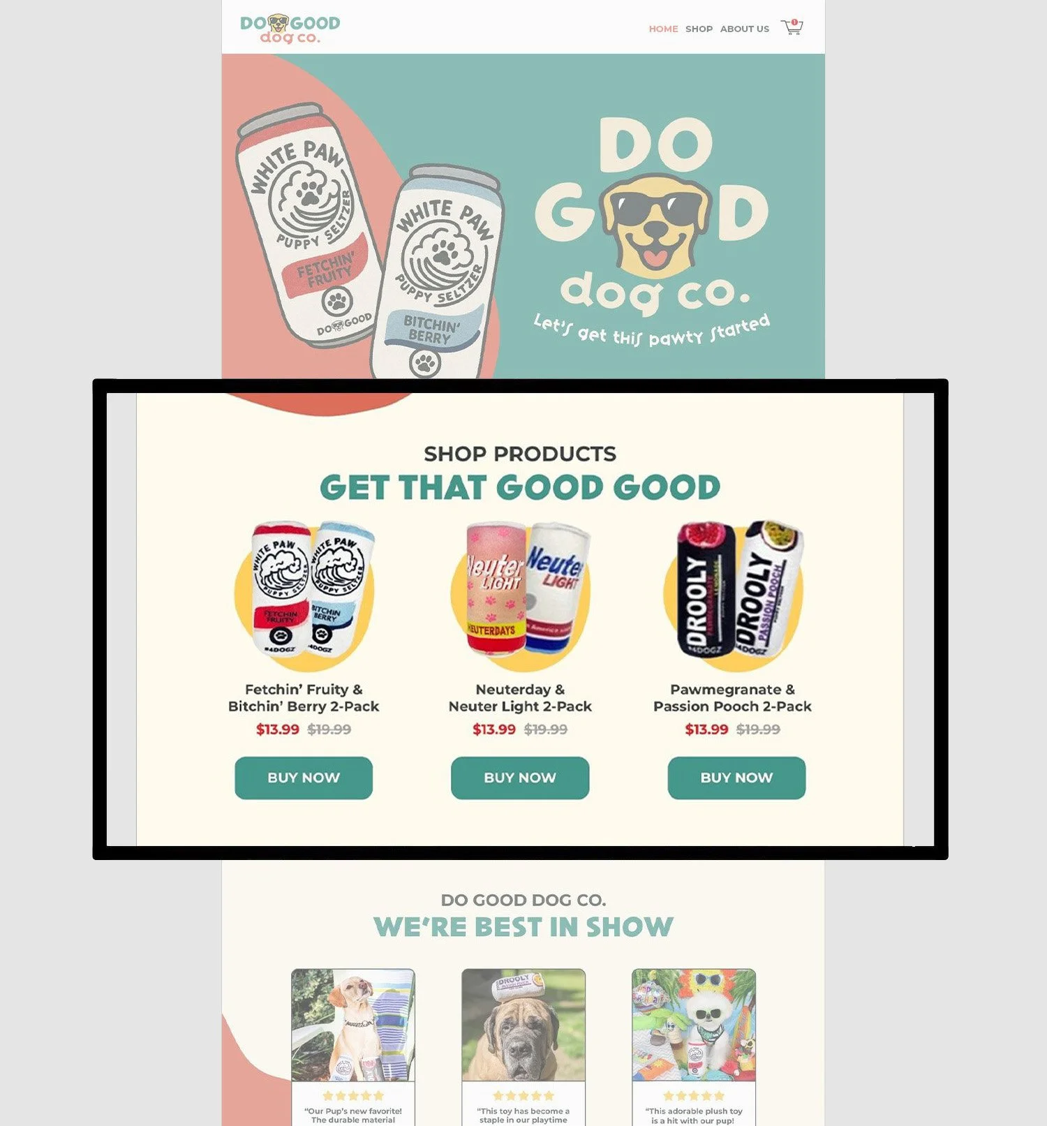 Showcased here is branding and social media management work I've done for the dog toy company Do Good Dog Co. This project allowed me to infuse a sense of fun and playfulness into every aspect of the brand. From designing a cheerful and inviting logo, to curating content for their social media platforms and website, the goal was to evoke joy and create a lighthearted atmosphere that resonates with dog lovers.